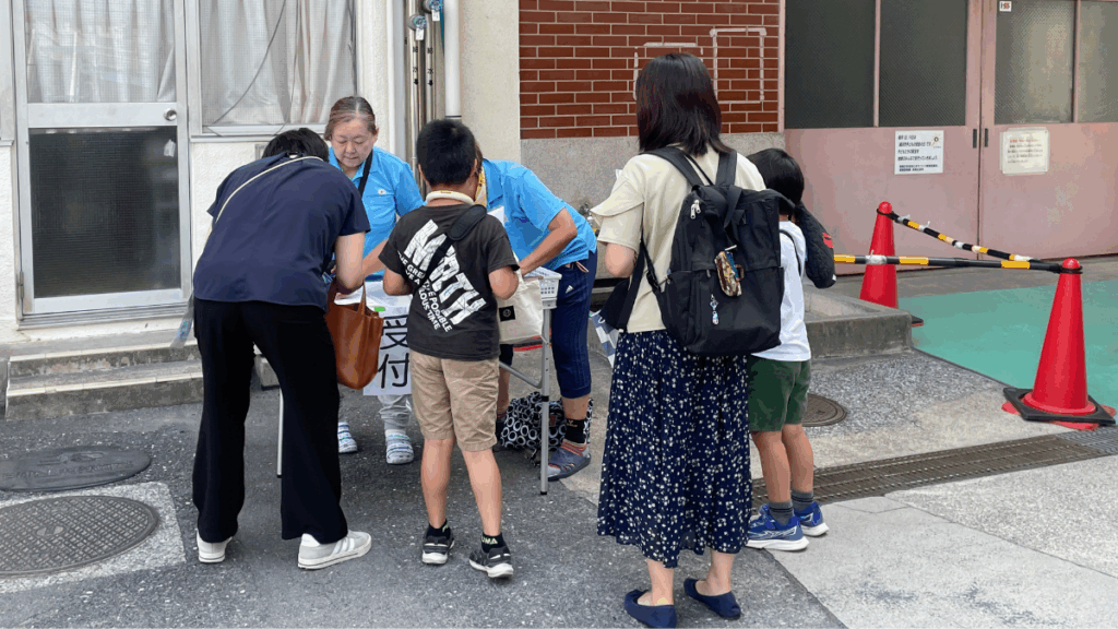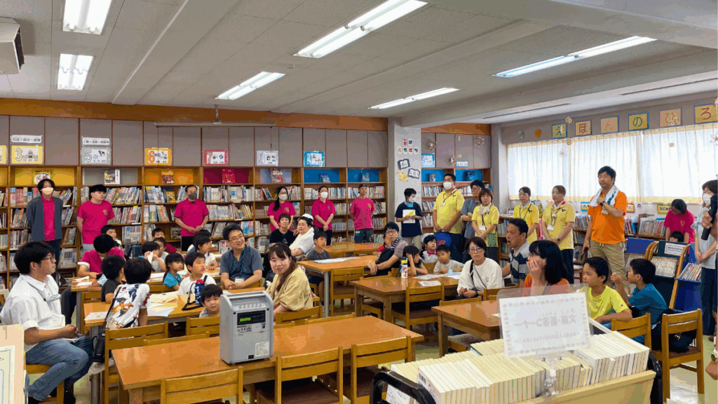 受付時間になると、さっそく親子連れが次々とやってきました。みなさん首に冷感グッズを巻き、暑さ対策もばっちりな様子。受付を済ませた人から、涼しい図書室へと移動していきました。