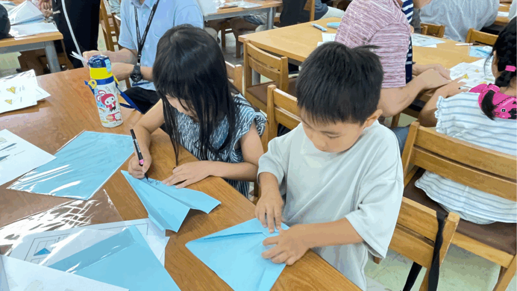 今回初めて参加したというご家族は「息子は紙ひこうきを作るのが好きで、キッズ(※)でいつも作って飛ばしているんです」と話してくれました。男の子は迷いなくどんどん折っていました。