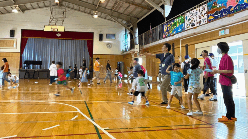 子どもたちは何回も飛ばしては体育館の中を走りまわり、大人は子どもにアドバイスしたり、静かに投げ方を微調整していたりと、年齢によってまったく違う様子がみられました。