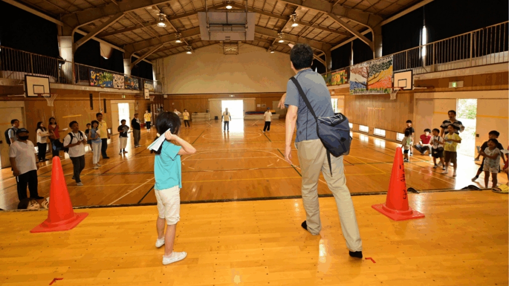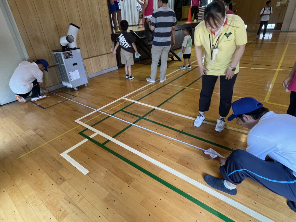 紙ひこうき大会では、紙ひこうきの飛距離をスポーツ推進委員の方が中心になって計測していました。「大会は真剣勝負。間違ってはいけないから私たちも真剣ですよ」と話してくれました。よく飛ぶひこうきが作れるようにサポートしたり、飛ばし方をアドバイスしたり、熱中症対策を考えたり、みんなが楽しめるようにこの大会はいろんな人の支えによって成り立っています。
