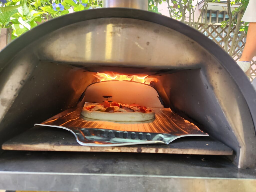 ピザ作りの仕上げは、屋外に設けられたピザ窯での焼き上げです 。