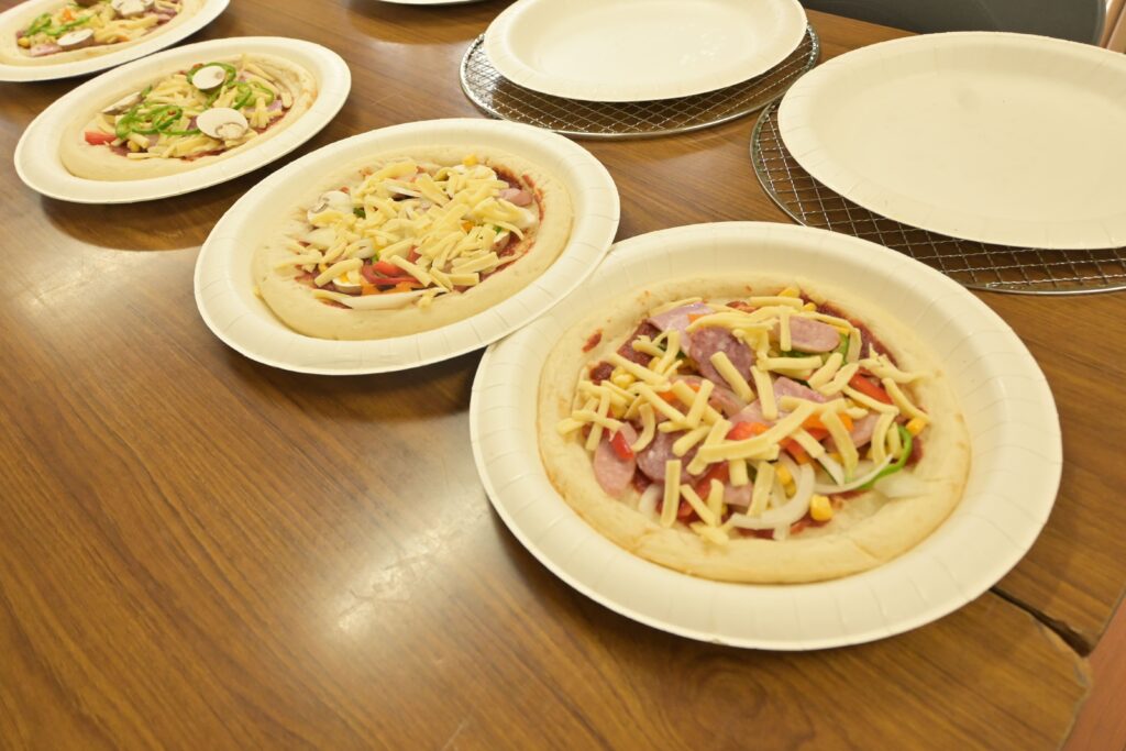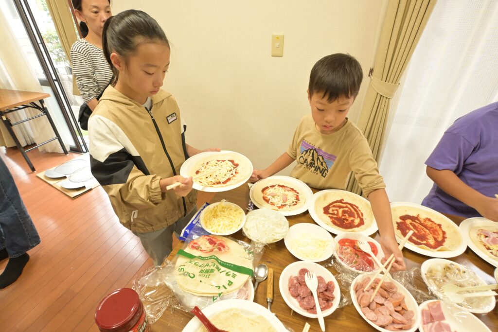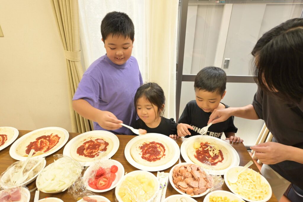 子どもたちは、小さな手で丁寧に具材を並べていき、一枚一枚個性が光るオリジナルピザを作りあげていました。