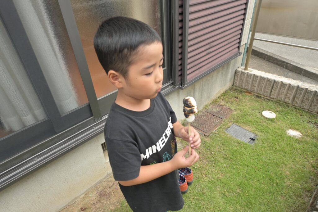 外では、町内会の方がガスバーナーを使ってマシュマロを焼いてくれていました 。ほんのり焼き色がついたマシュマロを口にした子どもたちは「おいしい!」「おかわり!」と大喜び 。甘い香りと笑顔があふれる、ほっとするひとときとなりました。