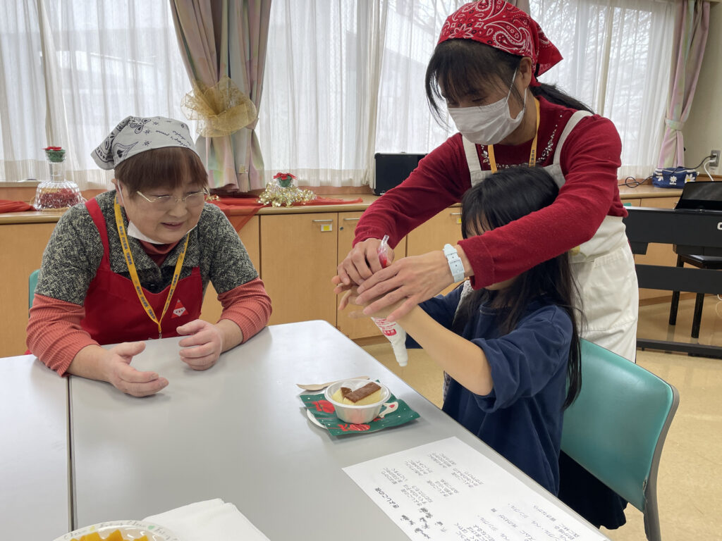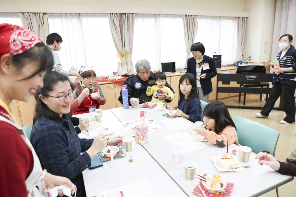 高齢の参加者は「あまり歌う機会がないので楽しいです。」と話してくれました。お菓子作りや歌は親子三世代で楽しめるので良いですね。中には、お孫さんを連れて参加している方もいました。