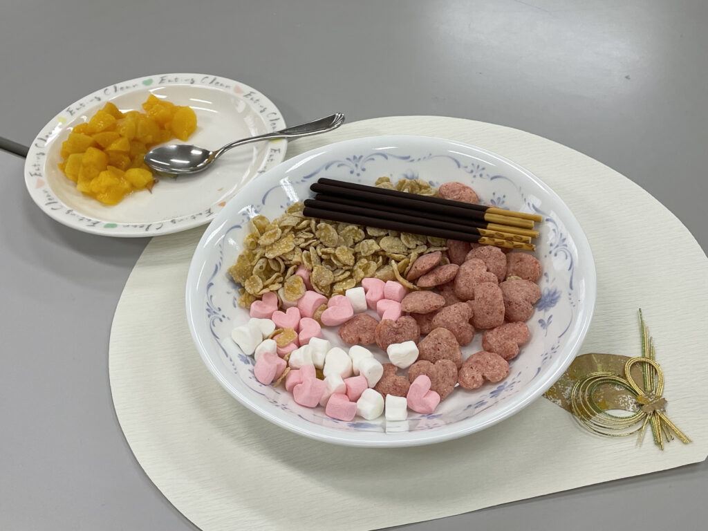 盛り付けでは「なにをのせる? お皿とろうか?」などの声かけから、高齢者と親子の間に会話が生まれていました。また、楽しそうに「どれにしようかな?」とママに相談している子もいました。